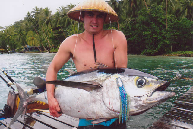 Angler's name – Tom Atfield Skippers Name – Club - Boat Name – Boat Type – 6 mtr Long Boat Fish Type – Yellowfin Tuna Weight – 40 Kg Tackle – 24 Kg Lure - JB Lures Green Evil Dingo Capture Date – 17-12-2010 Location – Gatokae Island, Solomon Islands